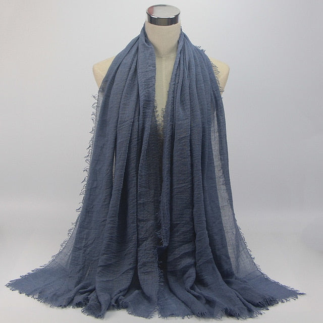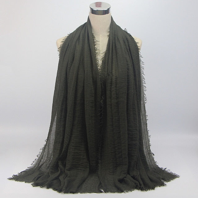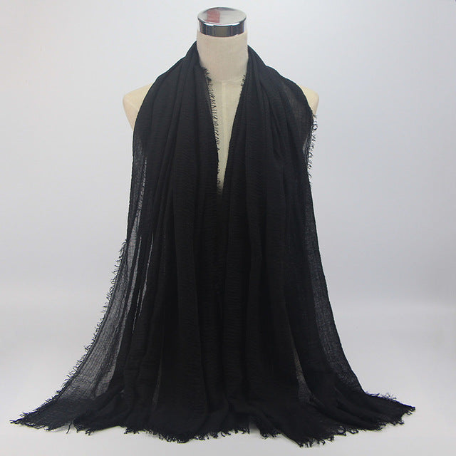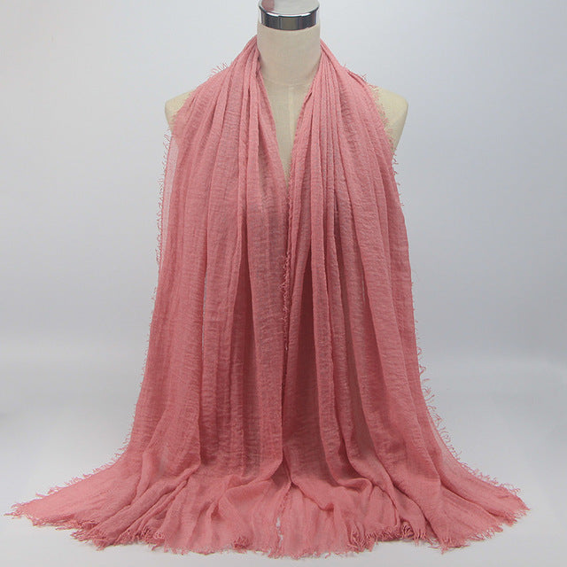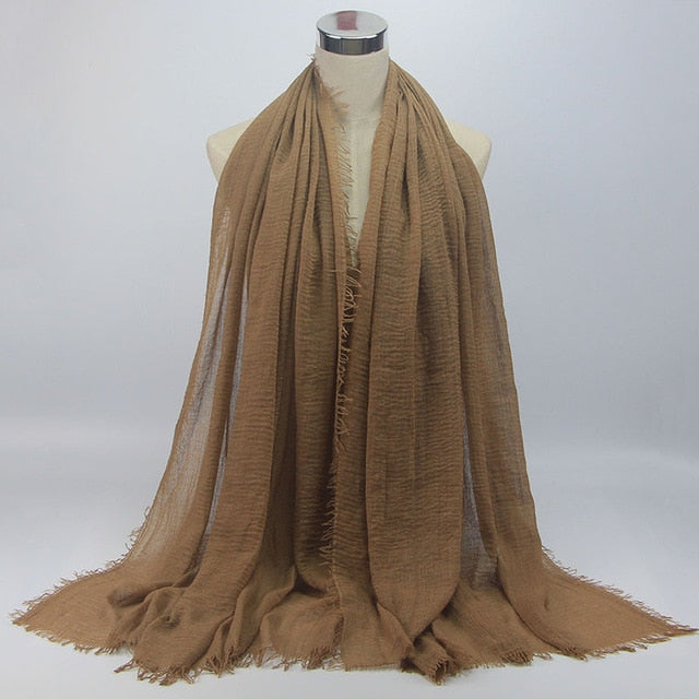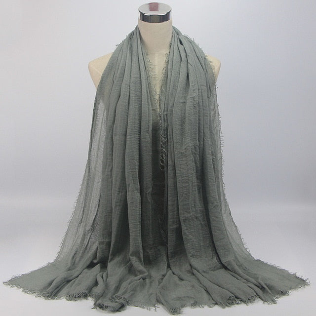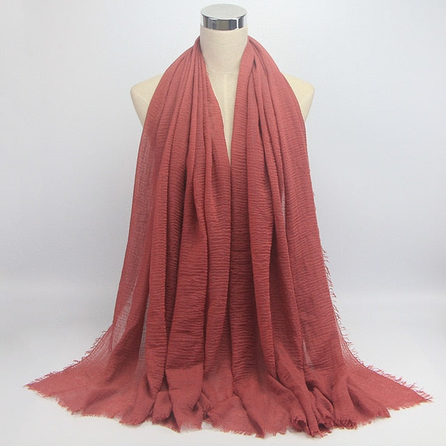 • 1 pcs Plain hijabs for women viscose solid color winter scarf muslim head wrap tassel scarves