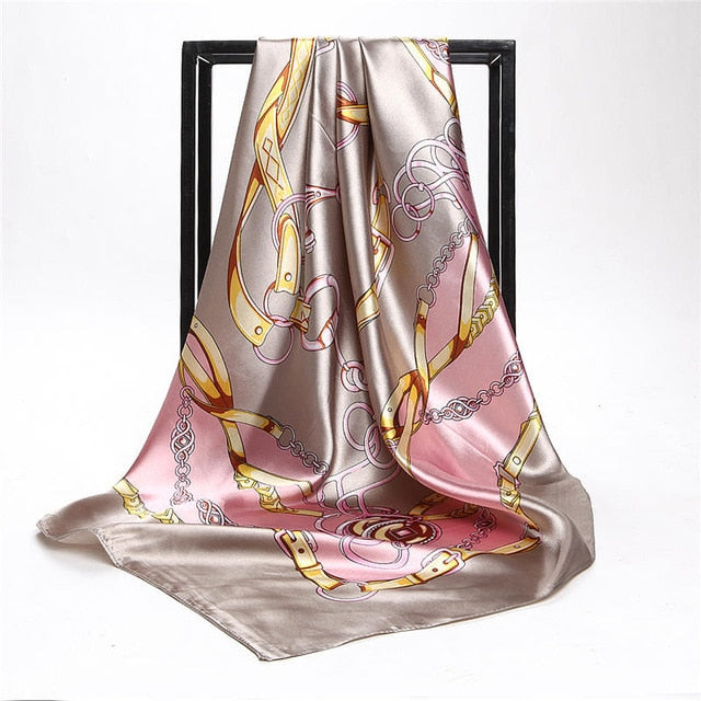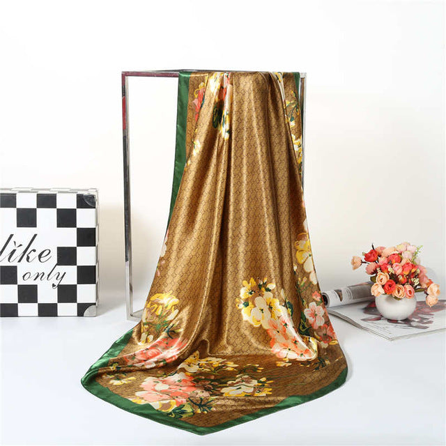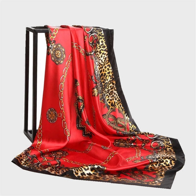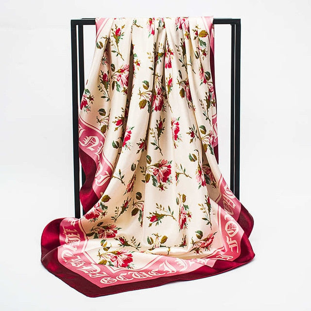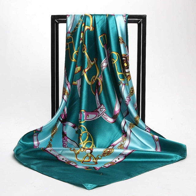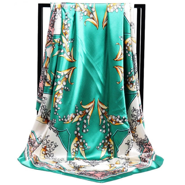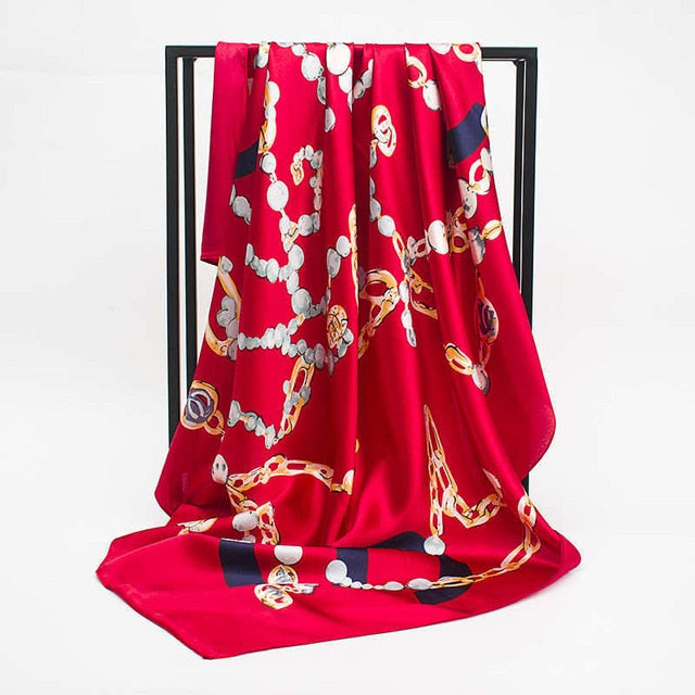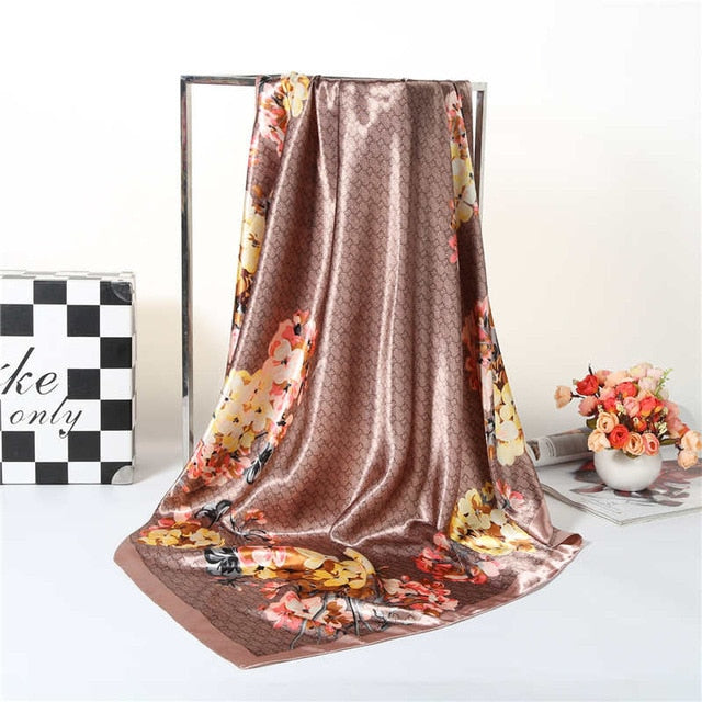 Women Scarf Silk Winter Print Foulard Satin Square Head Scarves Women Luxury Designer Shawls 90*90cm Bandana Large Muslim Hijab