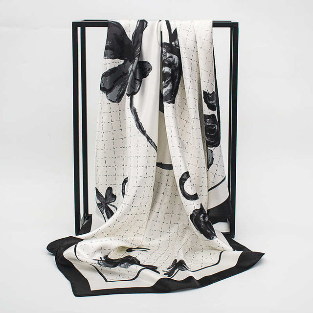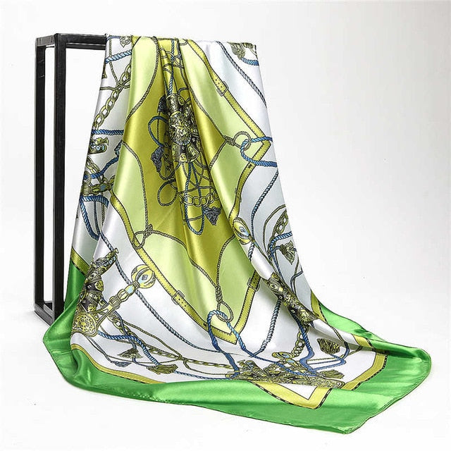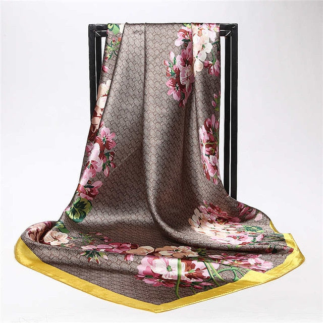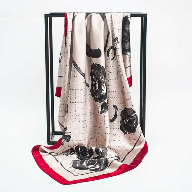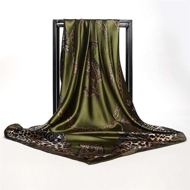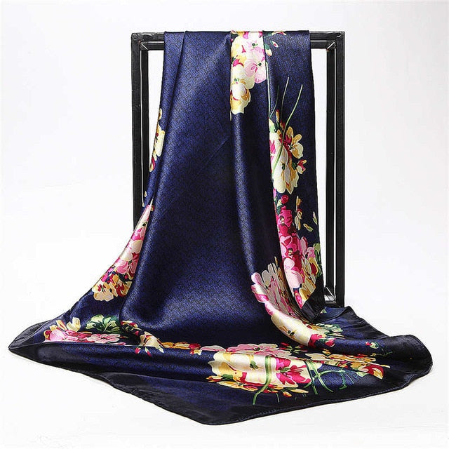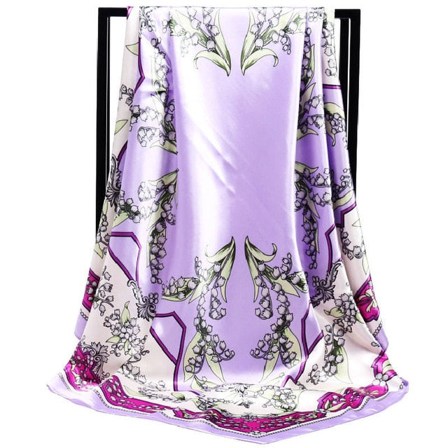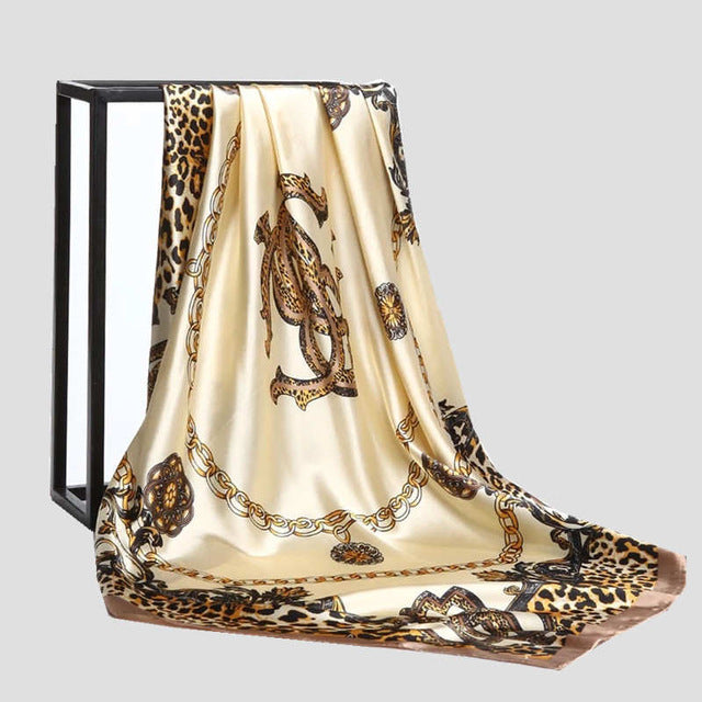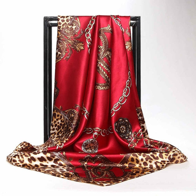 Women Scarf Silk Winter Print Foulard Satin Square Head Scarves Women Luxury Designer Shawls 90*90cm Bandana Large Muslim Hijab